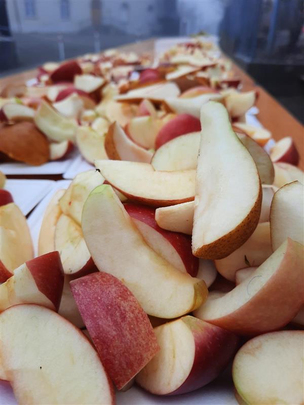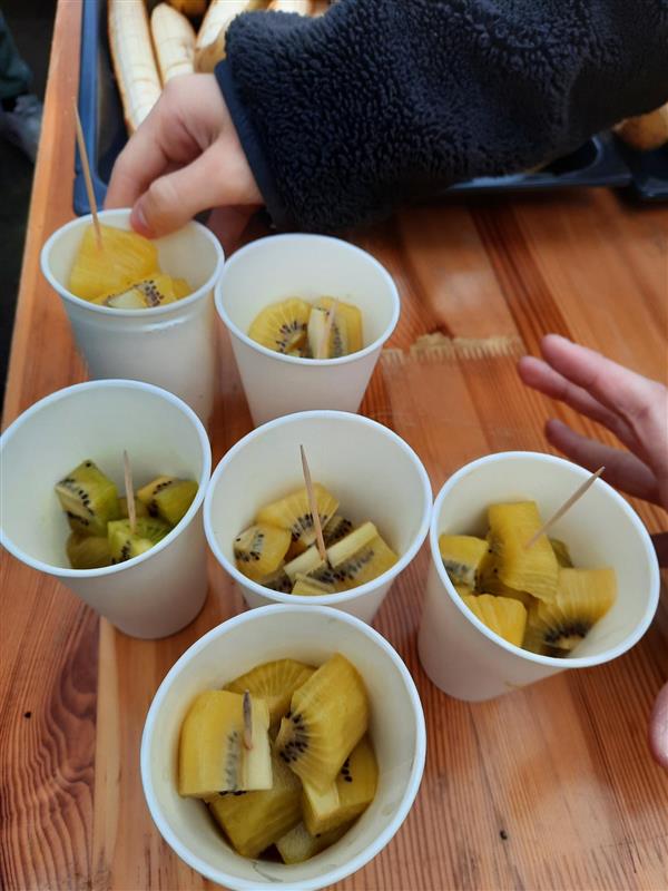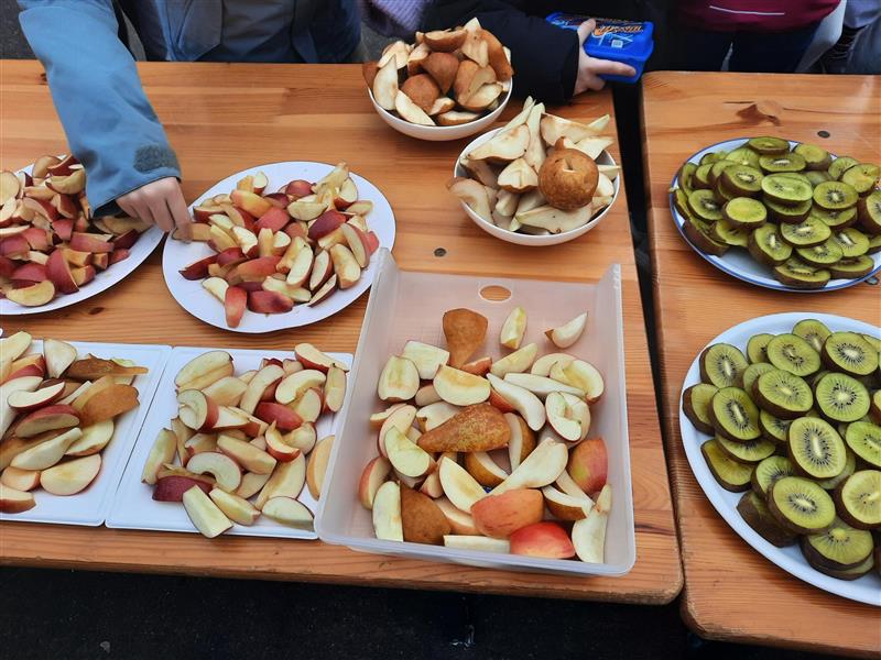 Am 21. Januar fand während einer verlängerten Pause das zweite Znünibuffet dieses Schuljahres statt. Die Klassen der Mittelstufe erhielten jeweils eine Kiste mit einer zugeteilten Frucht, die sie gemeinsam verarbeiteten und kreativ präsentierten. Während der Pause konnten alle Kinder auf dem Pausenplatz die vielfältigen und liebevoll zubereiteten Znüni-Häppchen geniessen.